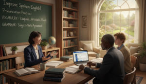 A good plan for improving spoken English focuses on speaking clearly and fluently. Work on making sounds right, stressing words correctly, and using the right tone. Learn common phrases and use them in roleplays for different situations.