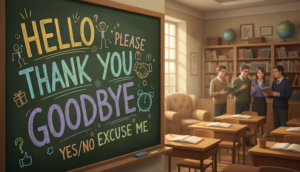 Words like “yes,” “no,” “please,” and “thank you” are important. They show respect and are used everywhere in English-speaking countries.